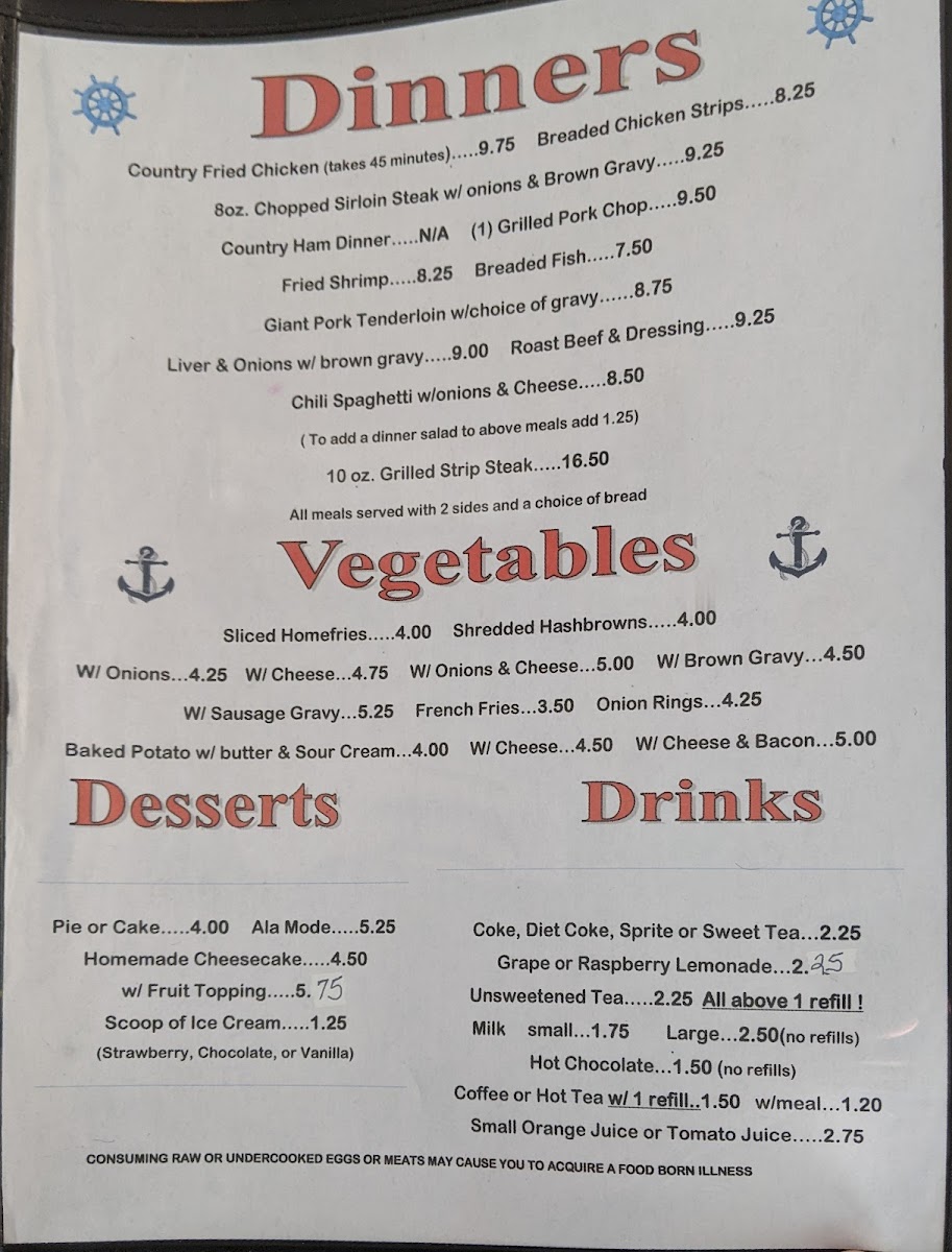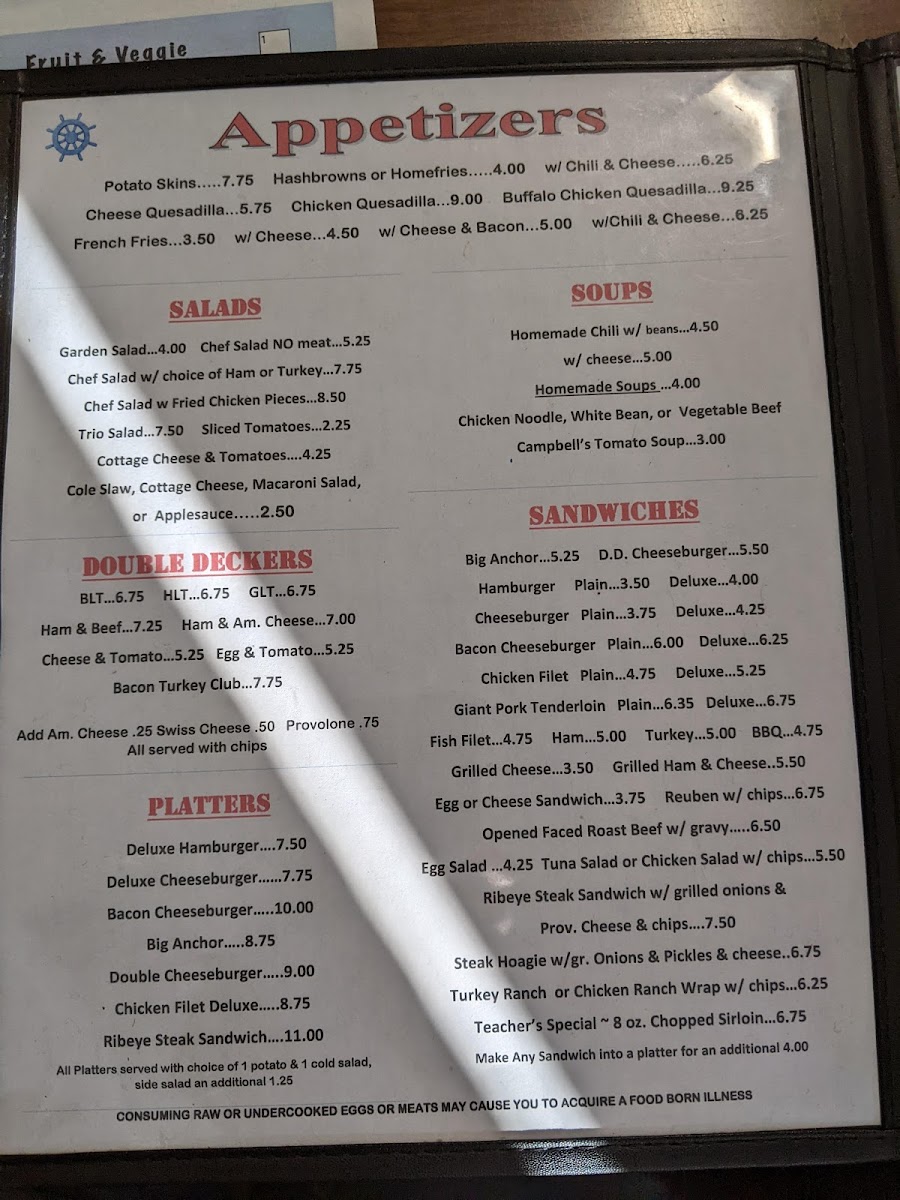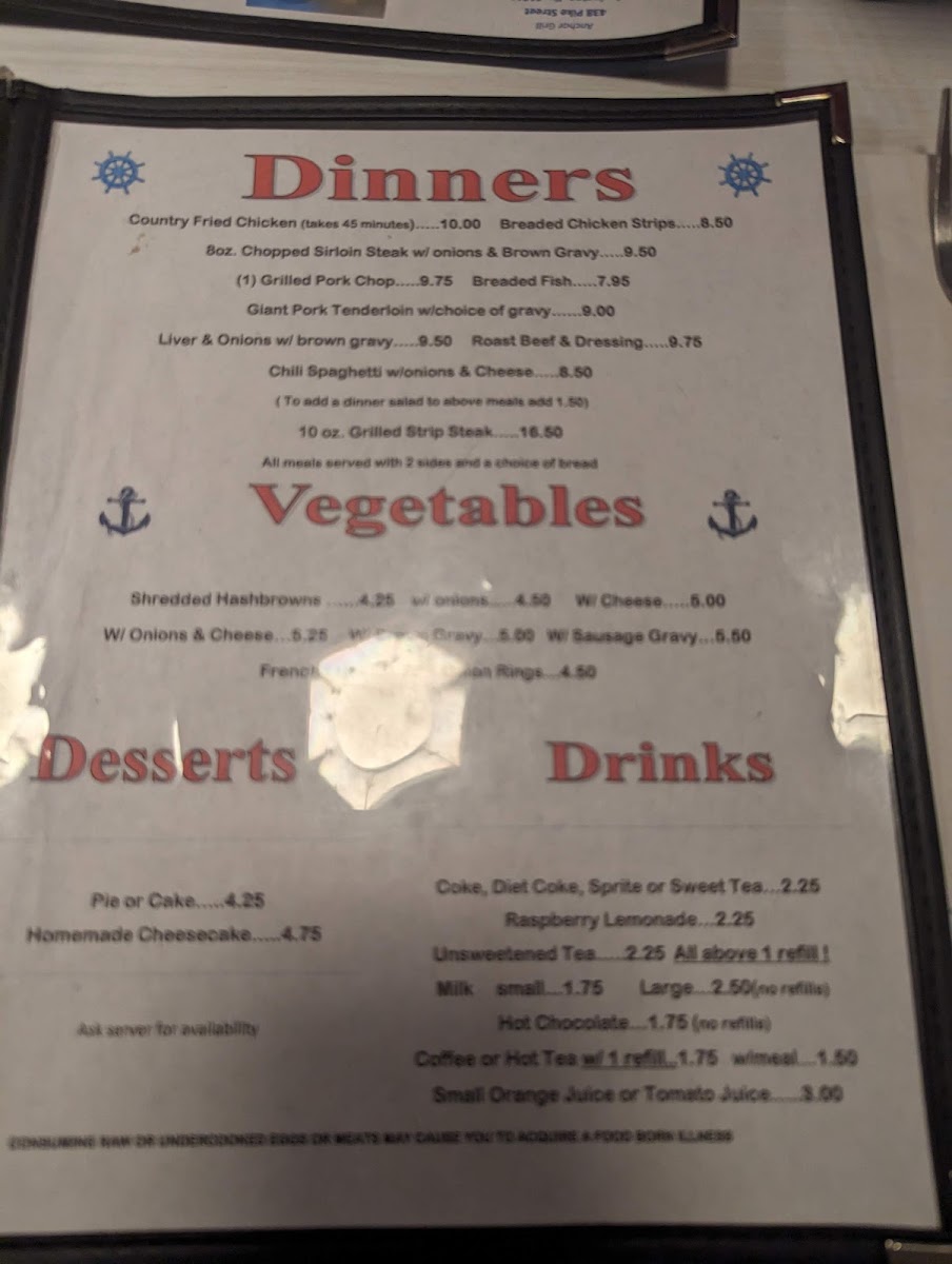 Anchor Grill Menu
